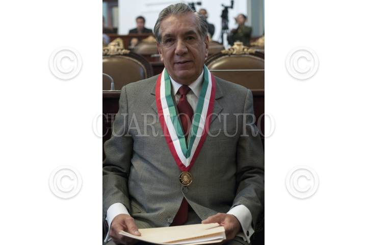 MÉXICO, D.F., 30OCTUBRE2014.- Alfredo Nieto, pintor y maestro de la Facultad de Artes y Diseño (FAD) de la UNAM, recibe la medalla al Mérito en Artes 2013 que otorgó la Asamblea Legislativa del Distrito Federal (ALDF) durante la sesión solemne de hoy. FOTO: DIEGO SIMÓN SÁNCHEZ /CUARTOSCURO.COM