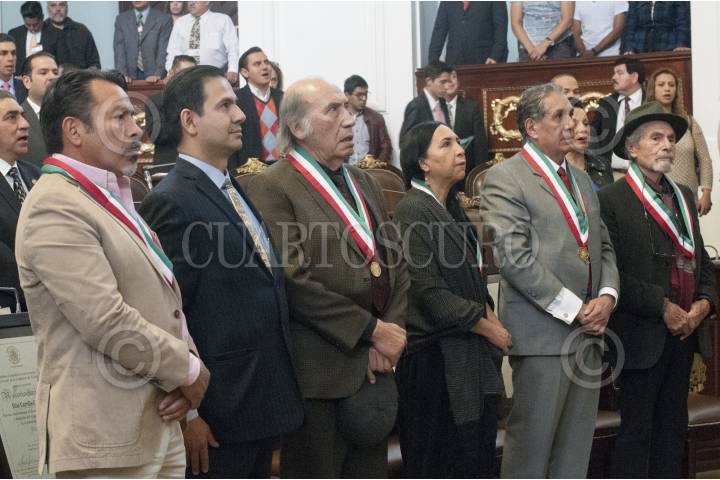 MÉXICO, D.F., 30OCTUBRE2014.- La Asamblea Legislativa del Distrito Federal (ALDF) entregó la medalla al Mérito en Artes 2013, al pintor Alfredo Nieto; Antonio González Orozco, muralista; René Avilés Fabila, escritor; Adolfo Mexiac, grabador, y a la bailarina Elisa Carrillo, quien no pudo asistir por motivos de trabajo. FOTO: DIEGO SIMÓN SÁNCHEZ /CUARTOSCURO.COM