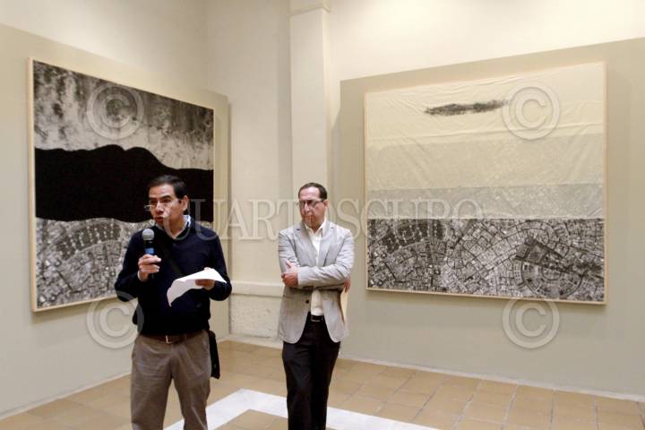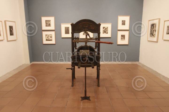CIUDAD DE MÉXICO, 12SEPTIEMBRE2016.- Eduardo Espinoza, curador de la exposición "La Sociedad Mexicana de Grabadores (1947-1971). Una plataforma para la promoción y difusión de la Estampa", y Santiago Pérez, director del Museo de la Estampa, durante la inauguración de la mencionada exposición. La Sociedad Mexicana de Grabadores, fundada en 1947, logró reunir a algunos de los más destacados grabadores mexicanos del siglo XX, como Abelardo Ávila, Angelina Beloff, Pedro Castelar, Lola Cueto, Manuel Echauri, Óscar Frías, Ángeles Garduño, Amador Lugo, Susana Neve, Mariano Paredes, Feliciano Peña, Julio Prieto y Ángel Zamarripa, entre otros. La presente exposición contribuye a la reconstrucción de un capítulo representativo de la historia del arte gráfico mexicano. FOTO: MOISÉS PABLO /CUARTOSCURO.COM