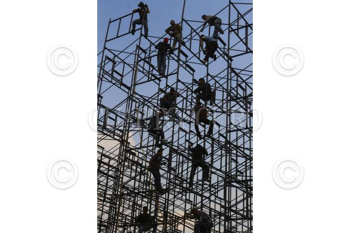 CIUDAD DE MÉXICO, 17SEPTIEMBRE2016.- A marcha veloz trabajadores retiran la estructura que sirvió como grada durante la celebración del aniversario de la Independencia. A su favor, el clima templado y parcialmente nublado de esta tarde. FOTO: MARÍA JOSÉ MARTÍNEZ /CUARTOSCURO.COM