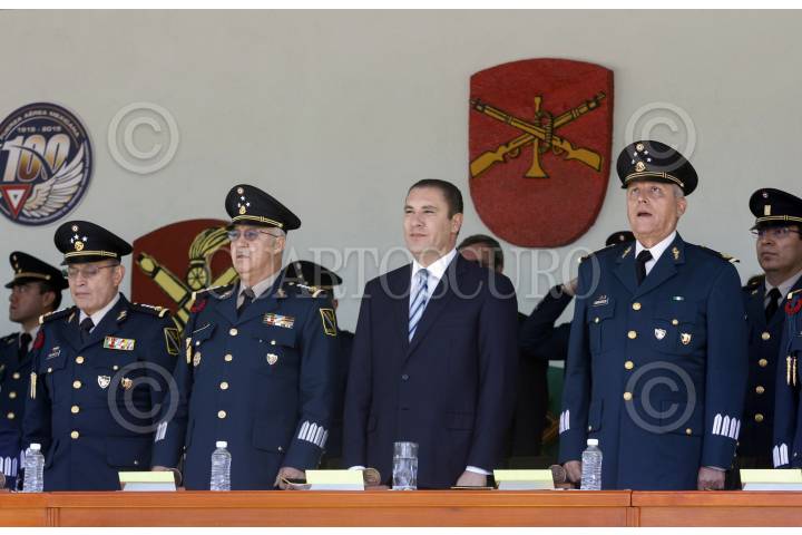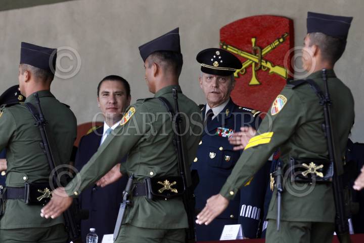 PUEBLA, PUEBLA, 05DICIEMBRE2015.- Salvador Cienfuegos Zepeda, secretario de Defensa Nacional, acompañado por el gobernador Rafael Moreno Valle, encabezó la "Ceremonia de Clausura de los Cursos de Formación y Regularización de Sargentos 1ros y 2dos de las Armas, Fuerzas Aérea, Fusileros Paracaidistas y Policía Militar", en las instalaciones de la Escuela Militar de Sargentos (EMS), dentro de la la 25a Zona Militar. FOTO: HILDA RÍOS /CUARTOSCURO.COM