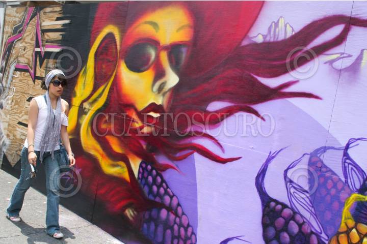 MÉXICO, D.F., 04AGOSTO2009.- Graffitis que se encuentran a los alrededores de el Palacio de Bellas Artes dan un toque pintoresco al andar de los capitalinos. FOTO: RICARDO CASTELAN/CUARTOSCURO.COM