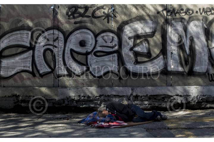 MÉXICO, D.F., 29DICIEMBRE2015.- Indigente duerme sobre Eje Central con sus sueños enmarañados entre los graffitis citadinos. FOTO: MOISÉS PABLO /CUARTOSCURO.COM
