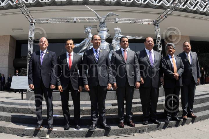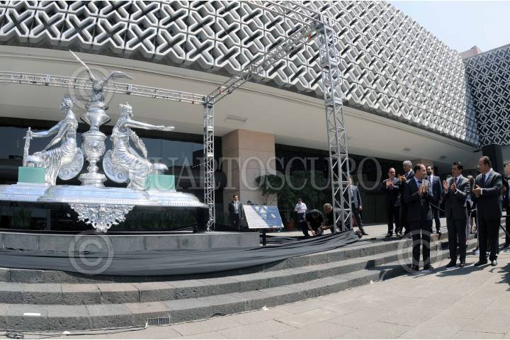CIUDAD DE MÉXICO, 20MARZO2018.- En la explanada de la Cámara de Diputados develaron la escultura "Gran Tintero Plateado", con un valor de 2 millones 250 mil pesos. La ceremonia fue presidida por el presidente de la mesa directiva Marko Cortés. FOTO: CUARTOSCURO.COM
