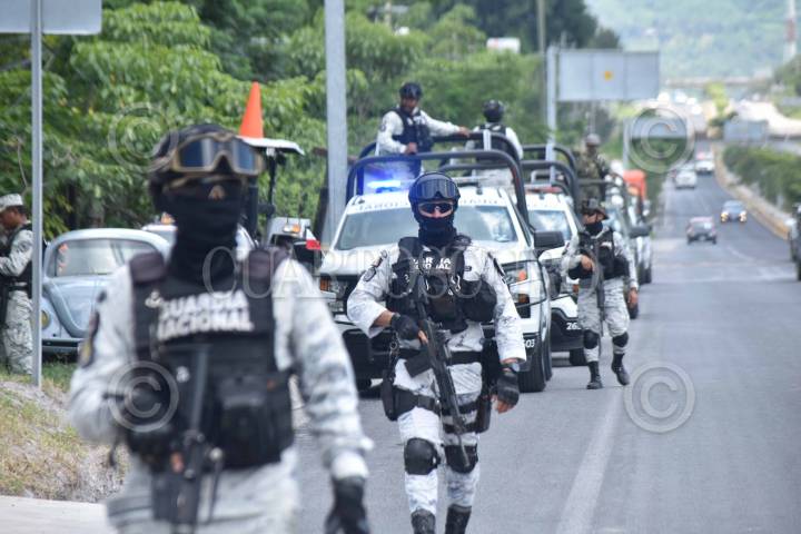 CHILPANCINGO, GUERRERO, 13SEPTIEMBRE2023.- a denuncia de la supuesta presencia de un artefacto explosivo frente al cuartel militar de la Guardia Nacional (GN), al sur de la capital, género la movilización de corporaciones de seguridad de los tres niveles de gobierno. Al lugar acudieron elementos de la Guardia Nacional, de la policía estatal, municipal y Ejército Mexicano para implementar un operativo de búsqueda del artefacto explosivo.Con ayuda de binomios caminos, las corporaciones policiacas revisaron la zona, sin embargo, no tuvieron éxito en el hallazgo de ninguna granada.FOTO: DASSAEV TÉLLEZ ADAME/CUARTOSCURO.COM