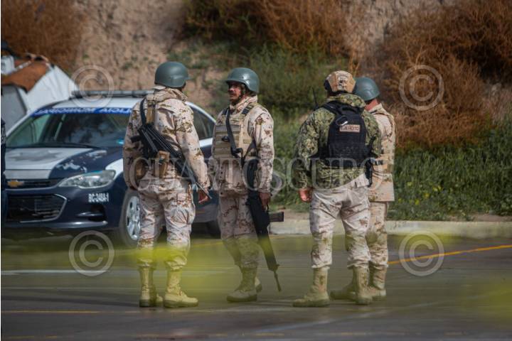 TIJUANA BAJA CALIFORNIA, 07MARZO2024.- Un artefacto explosivo fue encontrado en el estacionamiento de la subdelegación Florido Mariano de la Policía Municipal. Agentes de la Guardia Nacional, Ejército Mexicano y autoridades municipales resguardaron la zona, sobre la calle Fuentes de Mexicali. La granada de fragmentación, permaneció en el lugar, hasta el arribo de elementos del Ejército Mexicano Especializado que realizaron el retiro del artefacto explosivo, el cual aparentemente se encontraba inactivo. FOTO: CUARTOSCURO.COM