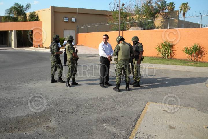 NUEVO LAREDO, TAMAULIPAS, 08JUNIO2011.- Una granada de fragmentación estalló en el interior del edificio de la Asociación de Agentes Aduanales ubicado en el cruce de Paseo Colón y calle México en esta ciudad sin que se registrasen victimas a raíz de la explosión que provocó la movilización de fuerzas militares y fuerzas policiacas en busca de los desconocidos que lanzaron el artefacto pero no lograron ubicarlos. Las esquirlas hicieron blanco en dos vehículos que se hallaban en el estacionamiento y en el interior de una de las paredes del local y de inmediato se inciaron las investigaciones al respecto sobre el atentado. FOTO: CUARTOSCURO.COM