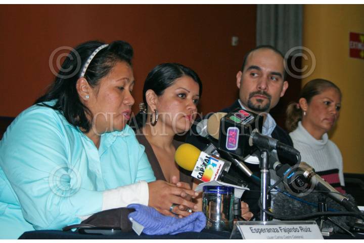 MÉXICO, D.F., 04NOVIEMBRE2008.- Las señoras, Esperanza Fajardo Ruiz, esposa de Juan Carlos Castro Galeana; Yudith Medina Ayala, esposa de Julio César Mondragón Mendoza y Julia Chavez, esposas de Alfredo Rosas Elicea, ofrecieron una conferencia donde piden a las autoridades que se haga justicia y se esclarezca esta situación de sus esposos quienes son los presuntos implicados en el atentado con granadas en la plaza de Morelos el pasado 15 de Septiembre ya que acaban de ser transladados al penal de Puente Grande en Jalisco. FOTO: ENRIQUE ORDÓÑEZ/CUARTOSCURO.COM