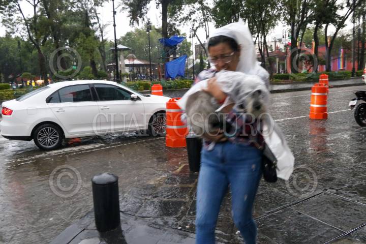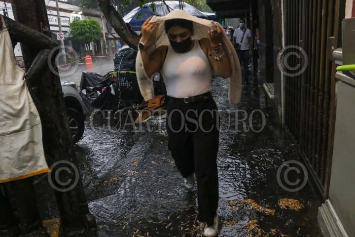 Fuerte lluvia en la alcaldía de Coyoacán.