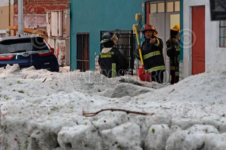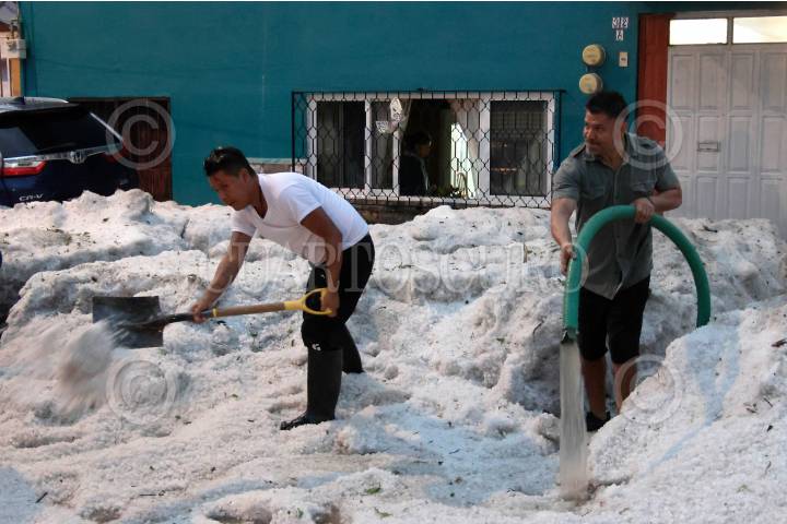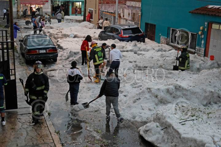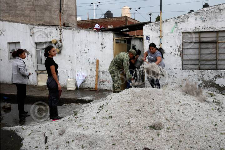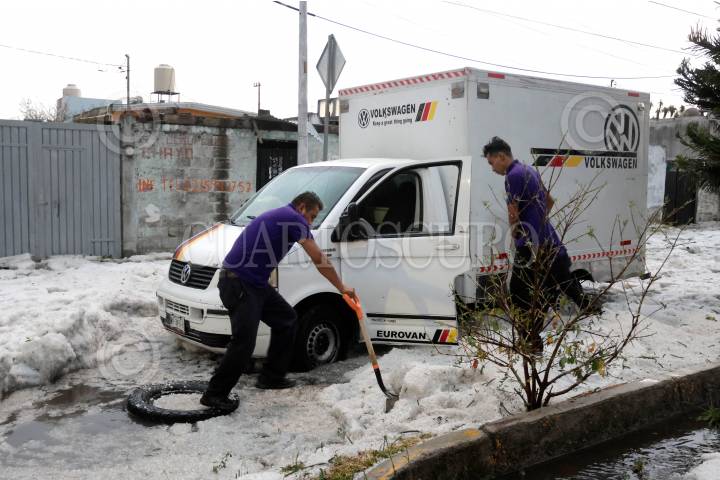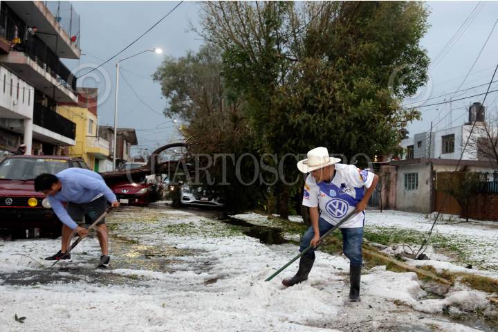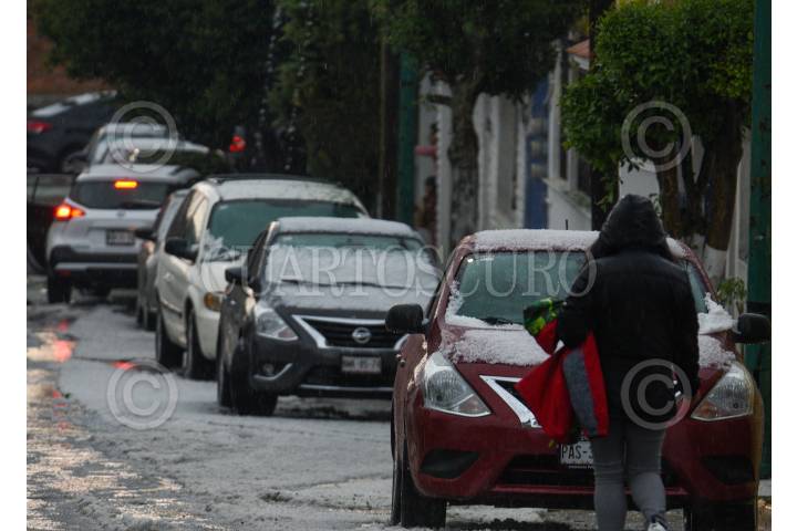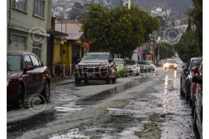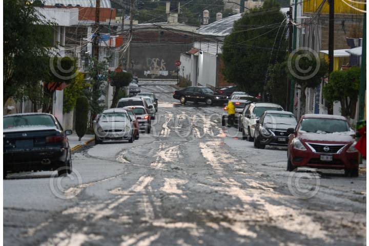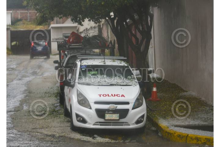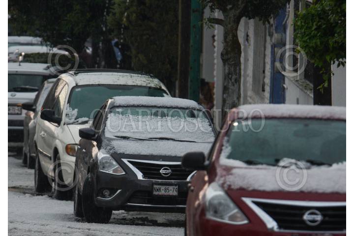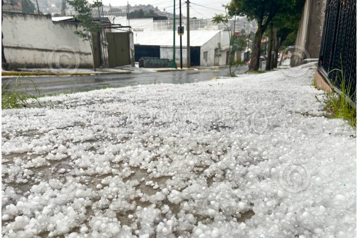 Una fuerte granizada se registró la tarde de este miércoles en diversos puntos del Valle de Toluca, en Metepec las calles lucieron blancas.