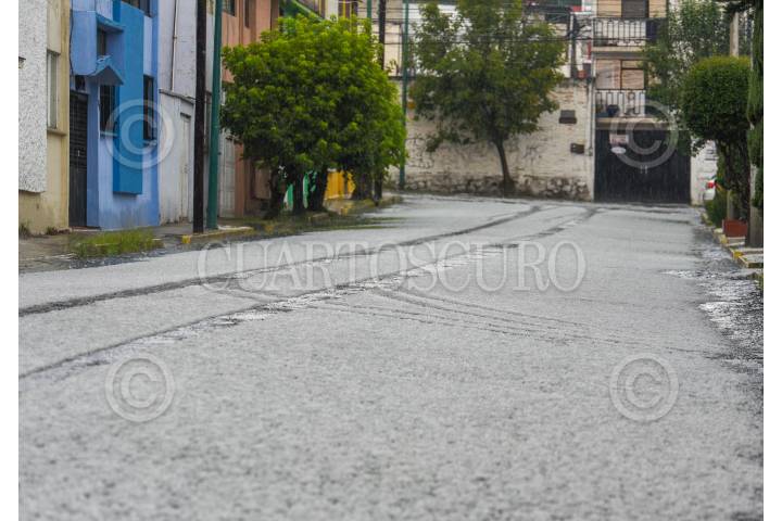 Se registra granizada en la ciudad de Toluca dejando algunas calles blancas.