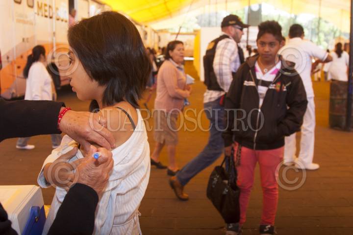 MÉXICO, D.F., 23FEBRERO2013.- Se realizó una mega jornada de salud en la explanada de la delegación de Xochimilco. Habitantes de esta demarcación acudieron a realizarse pruebas de la presión, llevar a sus hijos a ponerles la vacuna del tétanos, masajes antiestres, exámenes de la vista, colposcopia, o darse de alta en el seguro popular. FOTOS: FRANCISCO RODRÍGUEZ /CUARTOSCURO.COM