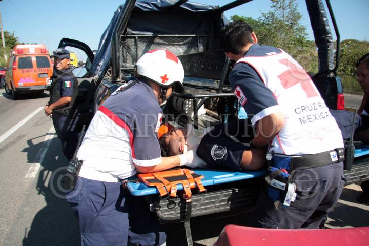 VILLAHERMOSA, TABASCO, 15FEBRERO2009.- Cuatro policías resultaron gravemente heridos cuando la unidad móvil de la Policía Estatal de Seguridad Pública en la que viajaban para realizar un operativo sufrió un percanse debido a que un ciudadano que conducía a exceso de velocidad sobre la carretera federal Villahermosa-Macuspana a la altura del ejido Coronel Traconis. FOTO: MARCO POLO GUZMÁN HERNÁNDEZ/CUARTOSCURO.COM
