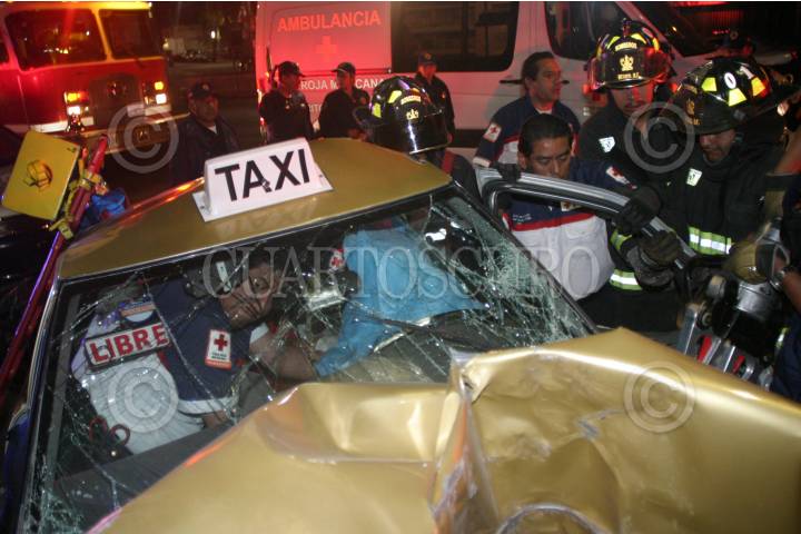 MÉXICO D.F., 12JUNIO2009.- Un taxista resulto gravemente lesionado después de impactar su unidad contra un árbol debido a que se encontraba en estado de ebriedad, los hechos se dieron en el eje 1 Norte al cruce con la calle MIguel Domínguez en la colonia Morelos. FOTO: LUZ ACEVEDO/CUARTOSCURO.COM