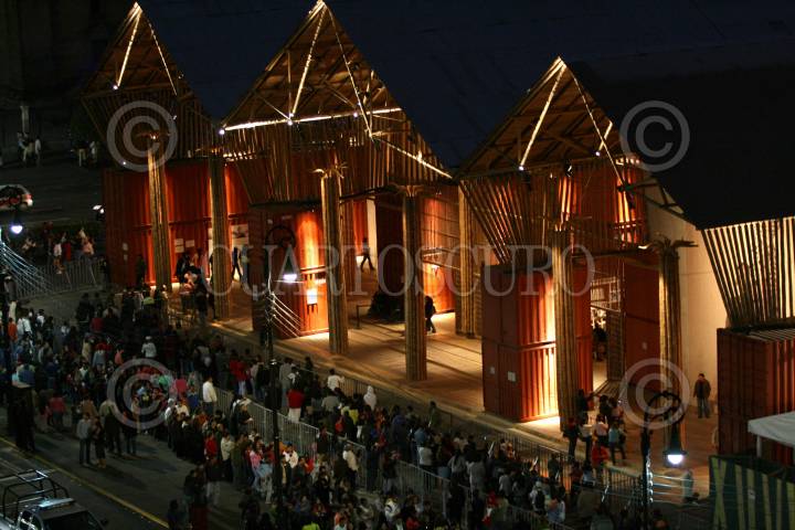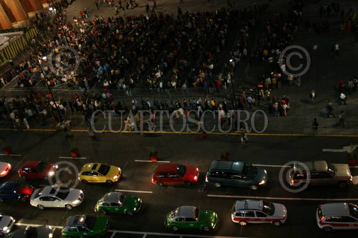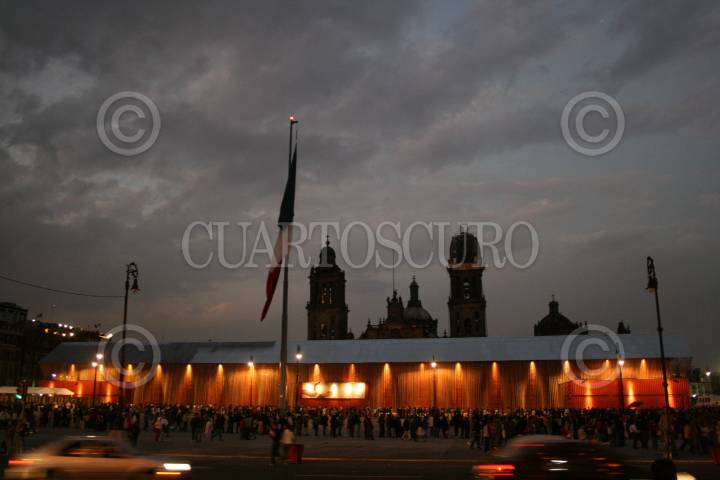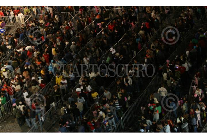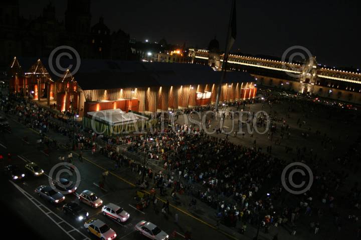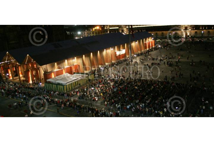MÉXICO, D.F., 19ENERO2008.- Decenas de personas hacen largas filas en la plancha del Zócalo para ingresaar al Museo Nomadico y apreciar la exposición Ashes and Snow del artista Gregory Colbert. FOTO: RICARDO CASTELAN/CUARTOSCURO.COM