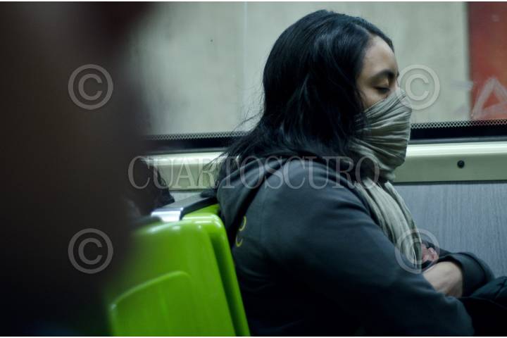MÉXICO, D.F., 04MAYO2009.- Hoy se cumplen 10 días de la alerta sanitaria en la ciudad de México por el virus de la influenza humana, personas que viajan en el metro usan tapabocas para evitar el contagio de este virus. FOTO: RICARDO CASTELAN/CUARTOSCURO