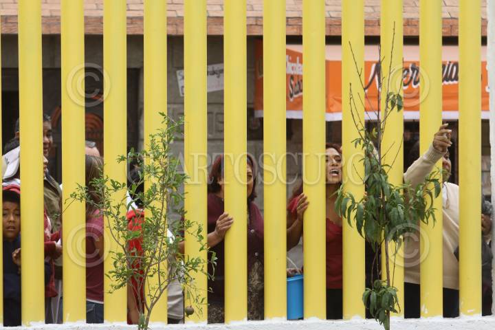MÉXICO, D.F., 18JUNIO2010.- Vecinos de la colonia La Esmeralda de la delegación Gustavo A. Madero gritaron consignas por no dejarlos ingresar a la inauguración del Centro Deportivo Bicentenario que fue inaugurado por Marcelo Ebrard, jefe de gobierno del D.F. FOTO: RODOLFO ANGULO/CUARTOSCURO.COM