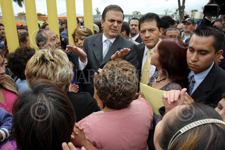 MÉXICO, D.F., 18JUNIO2010.- Marcelo Ebrard, jefe de gobierno del D.F. atendio a los vecinos de la colonia La Esmeralda de la delegación Gustavo A. Madero quienes gritaron consignas por no dejarlos ingresar a la inauguración del Centro Deportivo Bicentenario. FOTO: RODOLFO ANGULO/CUARTOSCURO.COM