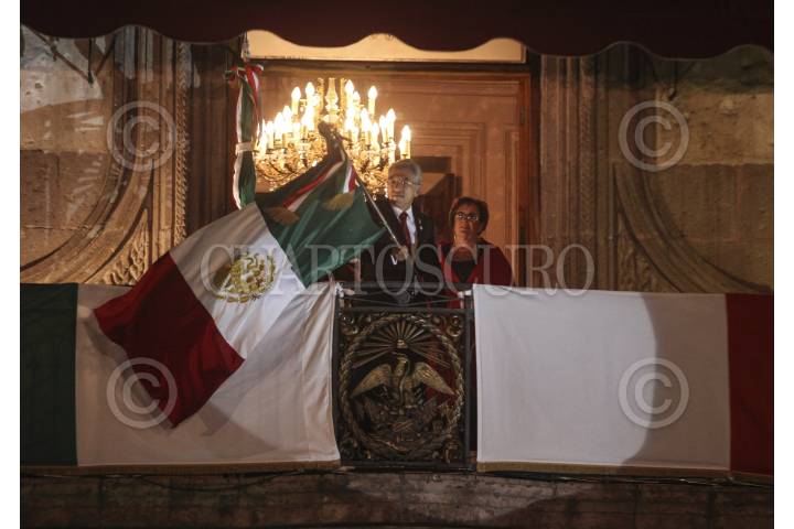 MORELIA, MICHOACÁN, 16SEPTIEMBRE2014.- El gobernador, Salvador Jara, dio el grito anoche en Palacio de Gobierno de esta ciudad capital. La ceremonia transcurrió con saldo blanco, en el que 495 policías estuvieron vigilando los festejos. FOTO: ALAN ORTEGA /CUARTOSCURO.COM