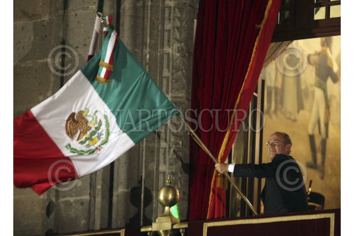 MÉXICO, D.F., 15SEPTIEMBRE2012.- Felipe Calderón Hinojosa, presidente de México, durante la ceremonia del Grito de la independencia, en el balcon de Palacio Nacional. FOTO: CUARTOSCURO.COM