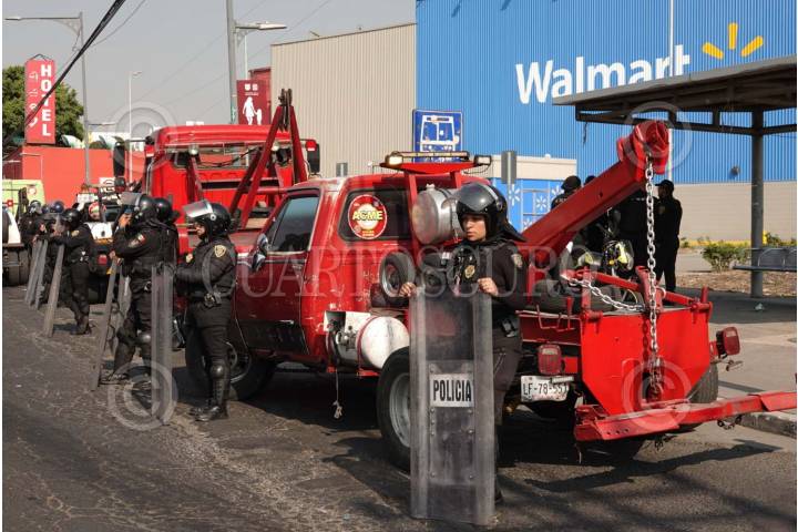 Taxistas se enfrentaron contra Policías Estatales y Municipales en Ecatepec. Los hechos derivaron luego de chóferes de la organización Alianza 2020 agredieran a grúas de la empresa Sartec, ya que las señalan que se llevan sus taxis de manera arbitrar