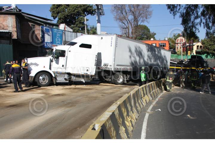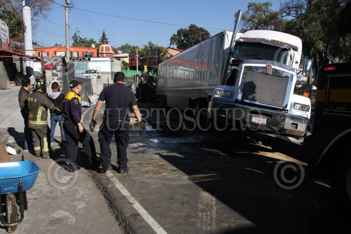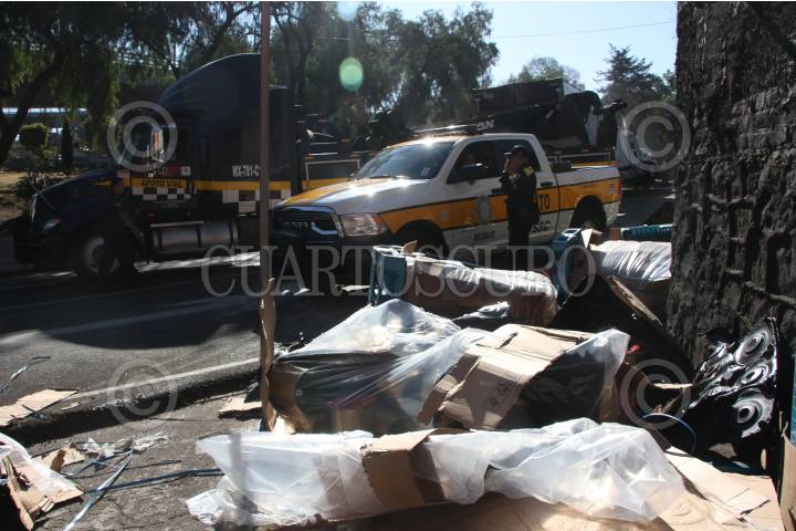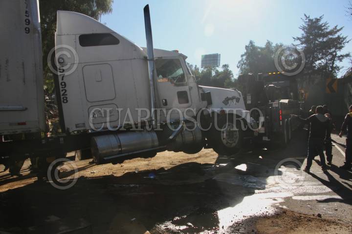 Con apoyo de dos gruas, elementos de seguridad ciudadana lograron incorporaron trailer que volcó en la México-Cuernavaca.