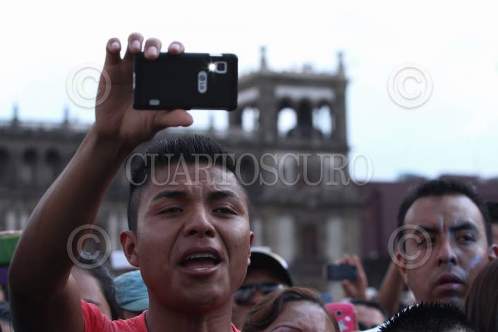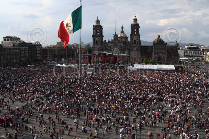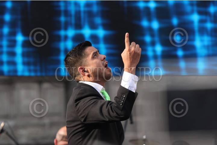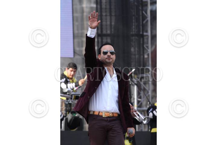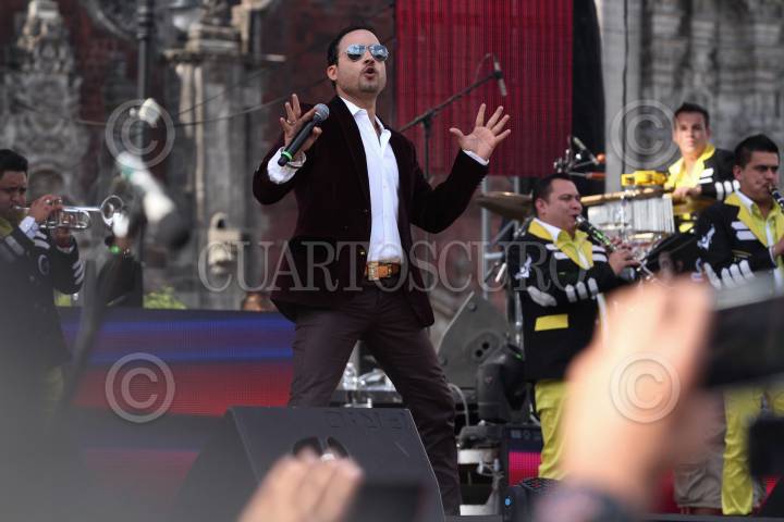 MÉXICO, D.F., 09AGOSTO2015.- Para festejar su aniversario número 50 La Original Banda Limón ofreció un concierto gratuito para todos sus seguidores en la plancha del Zócalo capitalino, German Montero fue uno de los invitados especiales a esta celebración. FOTO: ISABEL MATEOS / CUARTOSCURO.COM
