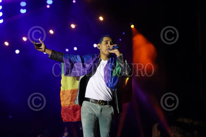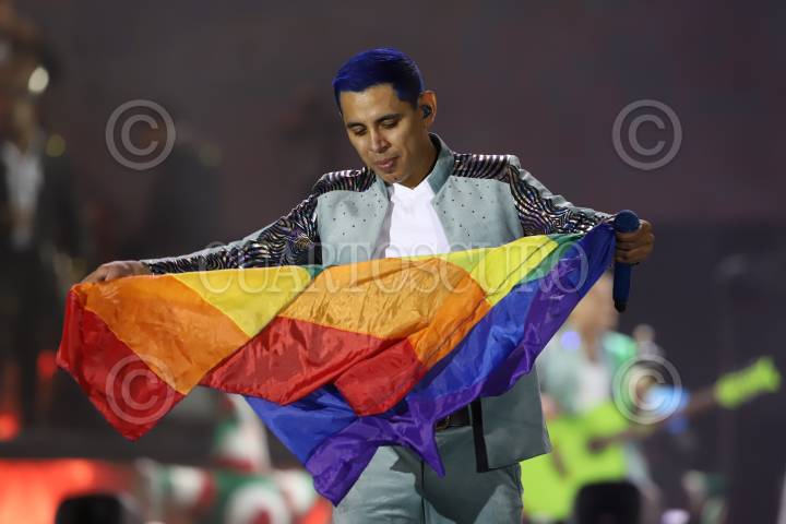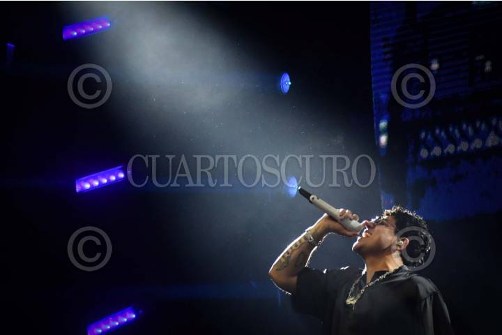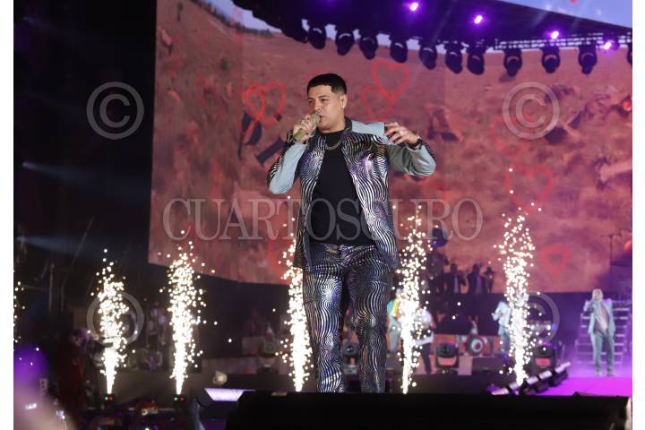 CIUDAD DE MÉXICO, 27JUNIO2025.- Eduin Caz, vocalista de Grupo Firme, agrupación de música regional mexicana, durante concierto esta noche en el Estadio GNP Seguros. FOTO: MARIO JASSO/CUARTOSCURO.COM