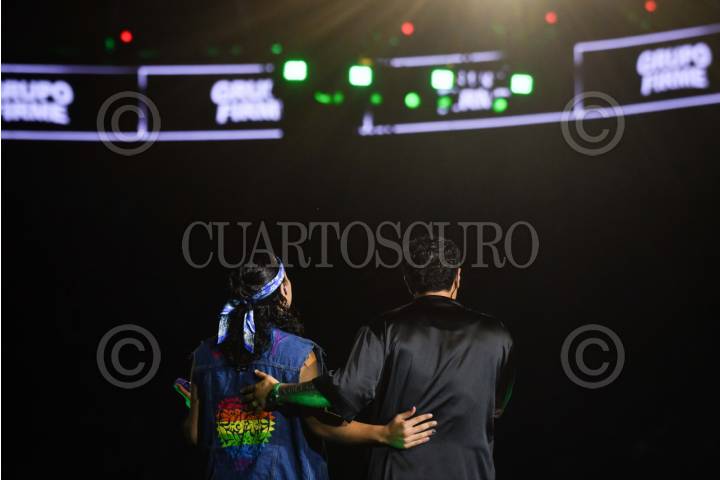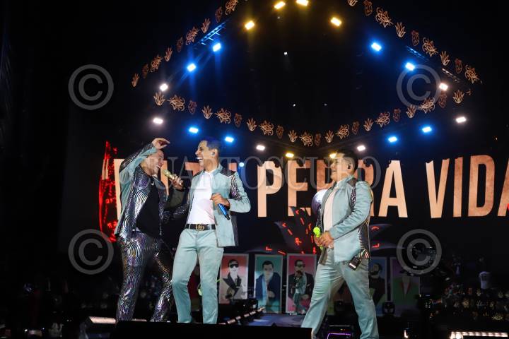 CIUDAD DE MÉXICO, 27JUNIO2025.- Eduin Caz, y Jhonny Caz, vocalistas de Grupo Firme, agrupación de música regional mexicana, durante concierto esta noche en el Estadio GNP Seguros. FOTO: MARIO JASSO/CUARTOSCURO.COM