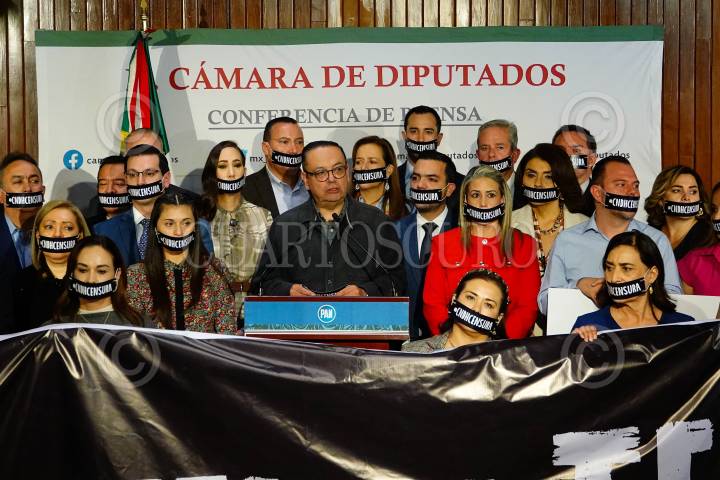 CIUDAD DE MÉXICO, 22OCTUBRE2024.- El grupo parlamentario del Partido Acción Nacional, durante la conferencia a medios durante la Sesión Ordinaria en la Cámara de Diputados. FOTO: ROGELIO MORALES /CUARTOSCURO.COM