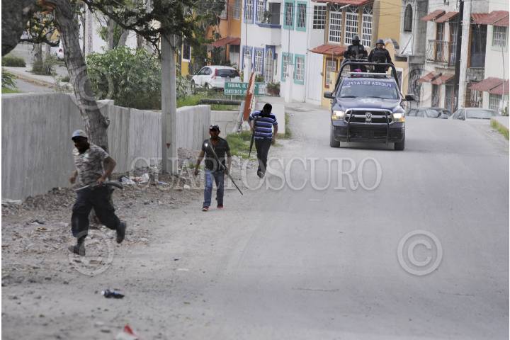 VERACRUZ, VERACRUZ, 18MARZO2014.- Vecinos de las colonias "El Coyol" y "La Herradura" así como de diversas zonas del puerto de Veracruz, Boca del Río y Medellín, salieron a las calles para realizar un recorrido de vigilancia ante el elevado índice de robos en la zona. Los habitantes portan palos, bates y tubos para defenderse de los maleantes, por lo que han sostenido reuniones con autoridades de la policía estatal. El gobernador Javier Duarte de Ochoa instauró los programas “Vecino vigilante" y "Policía en tu Colonia" ante el inminente surgimiento de colectivos de pobladores organizados. En las últimas semanas se han incrementado considerablemente los asaltos a bancos, tiendas departamentales y empresas, así como a transeúntes y casas habitación, lo que ha derivado en que los jóvenes y adultos hayan tomado dicha medida de protección. FOTO: FÉLIX MÁRQUEZ / CUARTOSCURO.COM