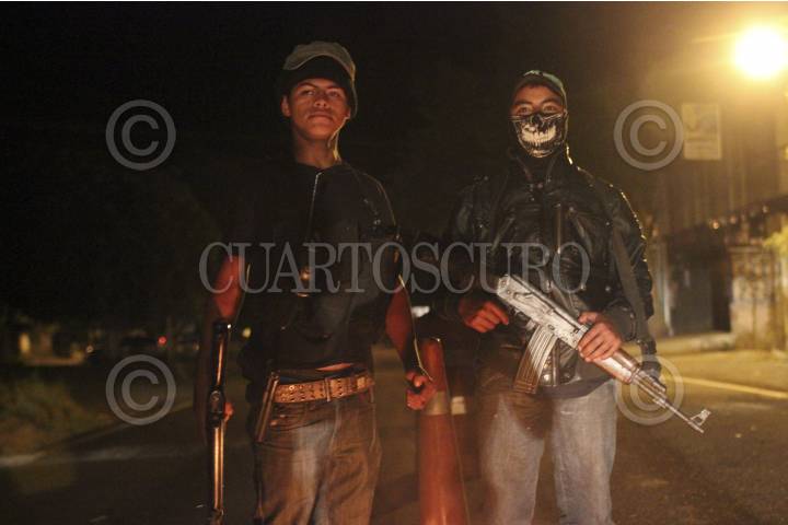 LOS REYES, MICHOACÁN, 04FEBRERO2014.- Los jóvenes de las autodefensas se mantienen vigilando de noche en las barricas por las constantes amenazas del Cartel de los Templarios, y por el avance de grupos de autodefensa que posiblemente en próximos días tomaran Apatzingán y Zamora. FOTO: JUAN JOSÉ ESTRADA SERAFÍN /CUARTOSCURO.COM