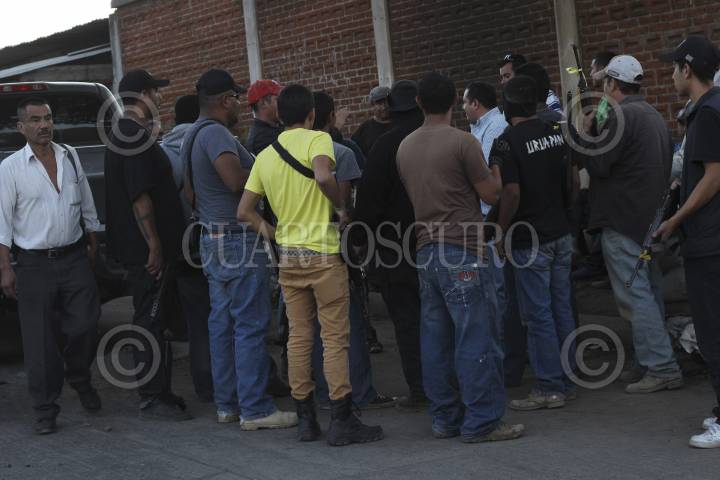 JICALAN URUAPAN, MICHOACÁN, 04ABRIL2014.- Grupos de Autodefensa de la localidad de Jicalan que se encuentra a 5 kilómetros de la cabecera municipal de Uruapan detuvieron a 4 personas quienes dentro de la población, en estado de ebriedad comenzaron a molestar a la población inclusive amenazaron de muerte a varios habitantes quienes de inmediato informaron al grupo de autodefensa quienes en cuestión de minutos se organizaron y fueron por los sujetos para interrogarlos. FOTO: JUAN JOSÉ ESTRADA SERAFÍN /CUARTOSCURO.COM