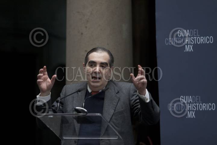 MÉXICO, D.F., 18JULIO2012.- Guillermo Tovar y de Teresa "cronista de la Ciudad de México", durante la presentación de la nueva Guía del Centro Histórico de México, la cual no solamente será impresa sino que también estará disponible por Internet, la ceremonia se realizó en el Antiguo Palacio del Ayuntamiento. FOTO: MOISÉS PABLO /CUARTOSCURO.COM