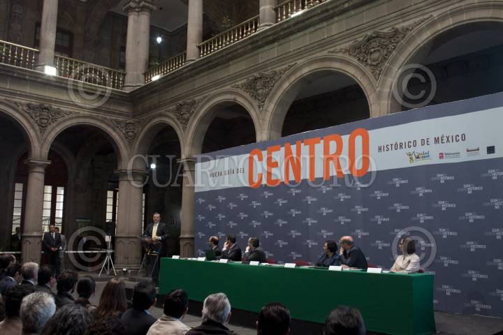 MÉXICO, D.F., 18JULIO2012.- Marcelo Ebrard Casaubón, Jefe de Gobierno, durante la presentación de la nueva Guía del Centro Histórico de México, la cual no solamente será impresa sino que también estará disponible por Internet, la ceremonia se realizó en el Antiguo Palacio del Ayuntamiento. FOTO: MOISÉS PABLO /CUARTOSCURO.COM
