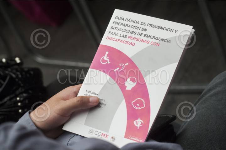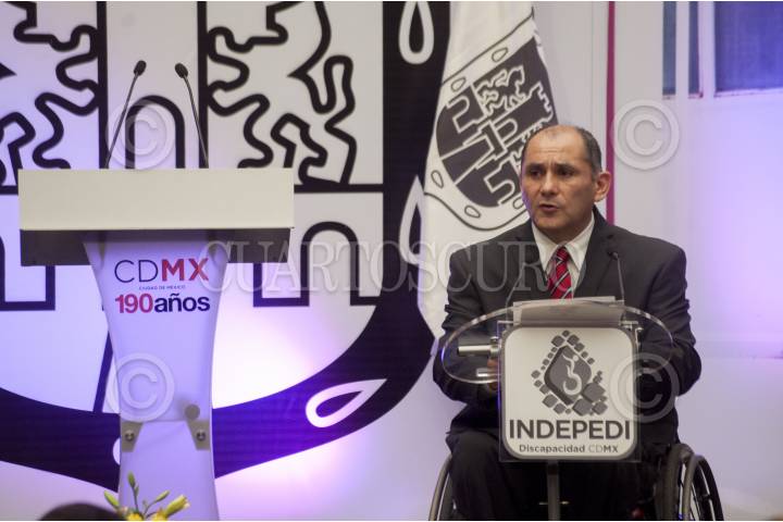 MÉXICO, D.F., 23JULIO2015.- Fidel Pérez de León, titular del Instituto para la Integración al Desarrollo de las Personas con Discapacidad del Distrito Federal (Indepedi), durante la presentación de la guía general de prevención y preparación en situaciones de emergencia para las personas con discapacidad en el Museo de la Ciudad de México. FOTO: DIEGO SIMÓN SÁNCHEZ /CUARTOSCURO.COM