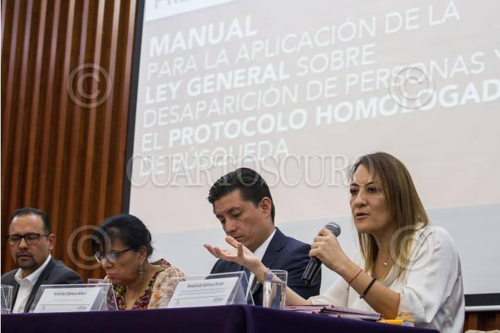 CIUDAD DE MÉXICO, 23ABRIL2018.- Nashieli Ramírez Hernández, titular de la Comisión de Derechos Humanos de la Ciudad de México, Roberto Cabrera Alfaro, comisionado nacional de Búsqueda de Personas, y Rosalinda Salinas Durán, directora general de Políticas Públicas del Programa Nacional de Derechos Humanos de la Secretaría de Gobernación, durante la presentación del Manual para la aplicación de la Ley General sobre Desaparición de Personas y el Protocolo Homologado de Búsqueda. FOTO: ISAAC ESQUIVEL /CUARTOSCURO.COM