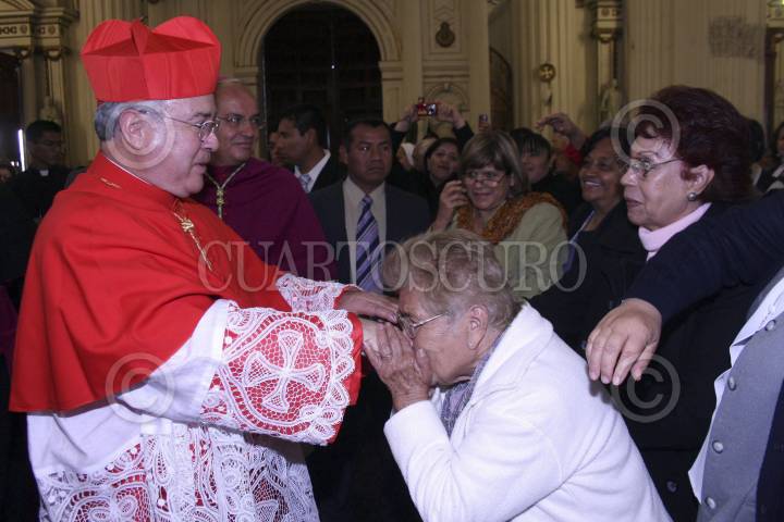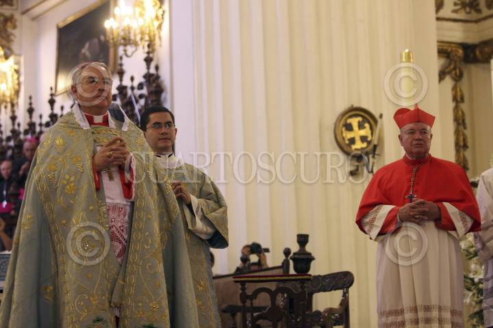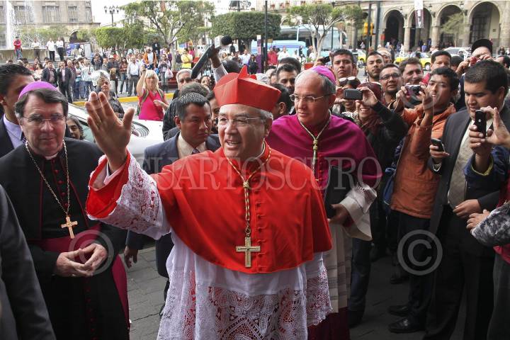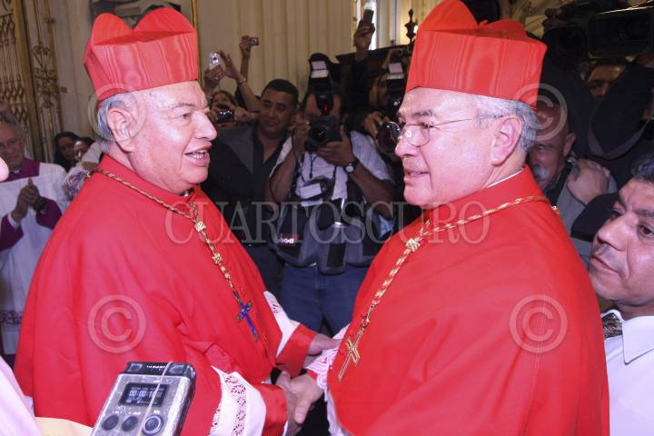 GUADALAJARA, JALISCO, 07FEBRERO2012.- En la Catedral Metropolitana de Guadalajara el Arzobispo Jose Francisco Robles Ortega recibió el saludo de bienvenida por su antecesor el cardenal emérito Juan Sandoval Iñiguez, ante cientos de fieles tapatíos, que lo recibieron de manera muy cordial y afectuosa. FOTO: FERNANDO CARRANZA GARCIA/CUARTOSCURO.COM
