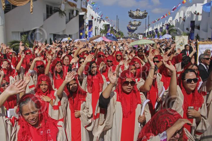 GUADALAJARA, JALISCO, 09AGOSTO2014.- Hoy en la Hermosa Provincia de esta ciudad, sede principal de la Luz del Mundo, se llevo a cabo la ceremonia de Bienvenida a los delegados de 45 países que asisten a la Santa Convocación 2014, misma que este año celebra 50 años del Ministerio de Samuel Joaquín Flores y a donde se espera la visita de alrededor de 315 mil fervientes a la celebración. FOTO: FERNANDO CARRANZA GARCIA /CUARTOSCURO.COM