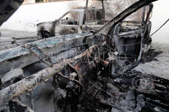 PUEBLA, PUEBLA, 05NOVIEMBRE2013.- Pobladores del municipio de Guadalupe Victoria quemaron varios automóviles oficiales y particulares además de que realizaron destrozos al interior de la presidencia municipal y casa del edil, en inconformidad con una reciente ola de violencia y falta de seguridad en la zona. FOTO: HILDA RÍOS/ CUARTOSCURO.COM