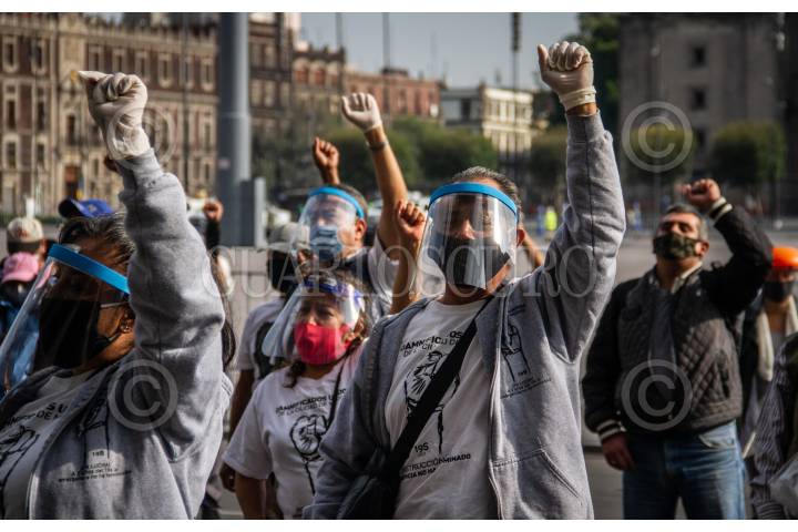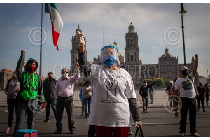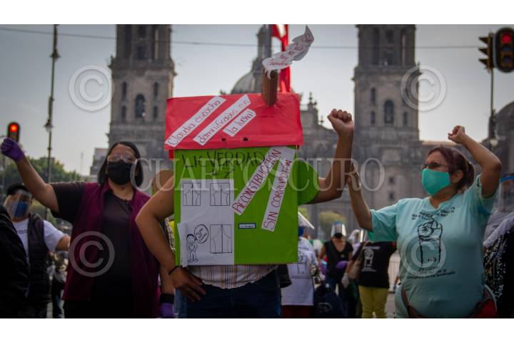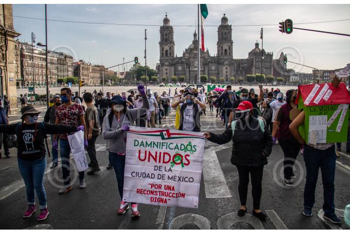 Miembros de la comisión de reconstrucción de los edificios derrumbados en Tlalpan en el sismo de 2017, se manifestaron para exigir claridad en la entrega de sus departamentos