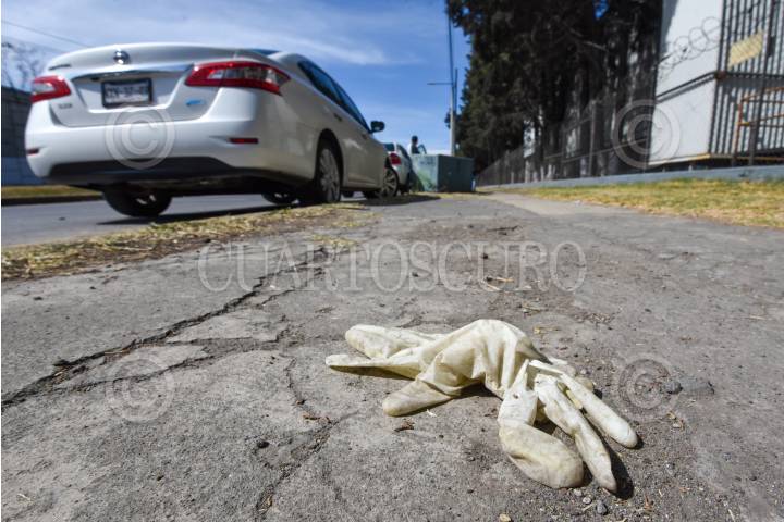 Tapabocas, guantes quirúrgicos y papel higiénico se tiran en las calles durante la Pandemia COVID-19