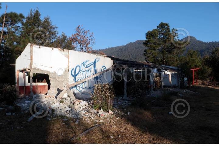 Contruccion de la Comision Nacional Forestal destruida en el bosque del norte de Cuernavaca.