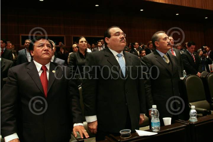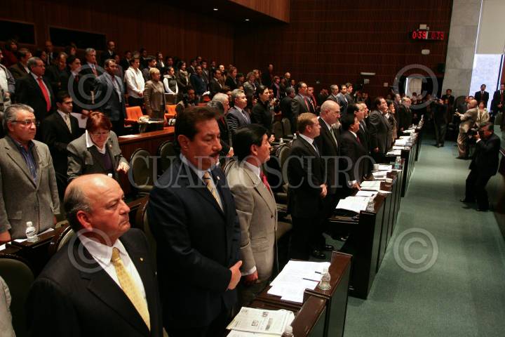 MÉXICO D.F., 22DICIEMBRE2009.- Senadores y Diputados integrantes de la Comisión Permanente del guardaron un minuto de silencio por la muerta de la familia del Tercer Maestre, Melquisedec Angulo Córdova, marino que falleció en el enfrentamiento donde también cayó muerto Arturo Beltrán Leyva, en Cuernavaca, Morelos, esto durante la sesión que se realizó en las instalaciones de la Cámara de Diputados. FOTO: GUILLERMO PEREA/CUARTOSCURO.COM