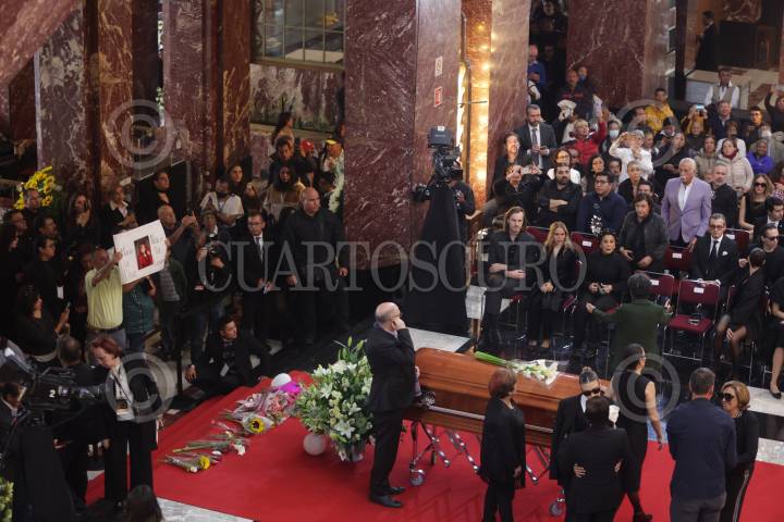 CIUDAD DE MÉXICO, 30NOVIEMBRE2024. Alejandra Ávalos e Ilse María Olivo Schweinfurth durante el homenaje a la primera actriz Silvia Pinal en el vestíbulo del Palacio de Bellas Artes tras su fallecimiento el pasado 28 de noviembre. FOTO: EDGAR NEGRETE LIRA/CUARTOSCURO.COM