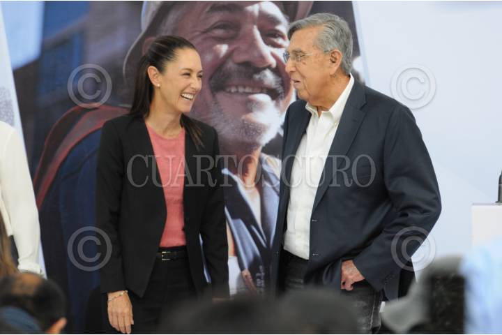 CIUDAD DE MÉXICO, 18MARZO2024.-Claudia Sheinbaum, candidata de Morena a la presidencia y el Ingeniero Cuauhtémoc Cárdenas, dialogan durante el evento. FOTO: DANIEL AUGUSTO /CUARTOSCURO.COM
