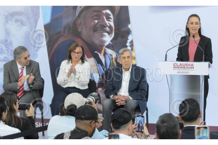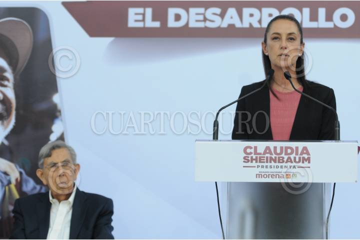 CIUDAD DE MÉXICO, 18MARZO2024.- Claudia Sheinbaum durante su presentación del proyecto República Soberana y con Energía, donde estuvo acompañada por Cuauhtémoc Cárdenas. FOTO: DANIEL AUGUSTO / CUARTOSCURO.COM