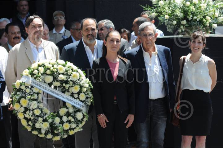 CIUDAD DE MÉXICO, 18MARZO2024.- El Ingeniero Cuauhtémoc Cárdenas, acompañado de sus hijos Lázaro, Cuauhtémoc y Camila y la candidata de Morena a la presidencia, Claudia Sheinbaum, colocaron una ofrenda floral y rindieron guardia de honor frente al mausoleo de Lázaro Cárdenas para conmemorar el 86 aniversario de la Expropiación Petrolera. FOTO: DANIEL AUGUSTO /CUARTOSCURO.COM