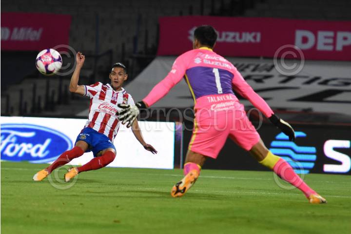 Uriel Antuna dispara ante la atajada de Alfredo Talavera.