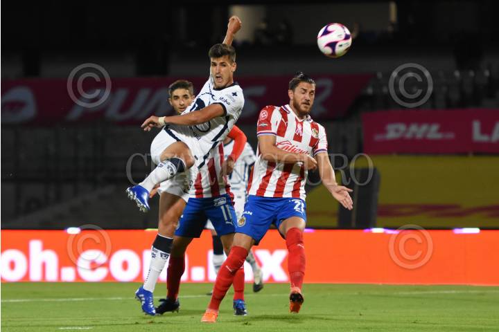Alexis Vega, de Guadalajara, se lanza para golpear el balón.